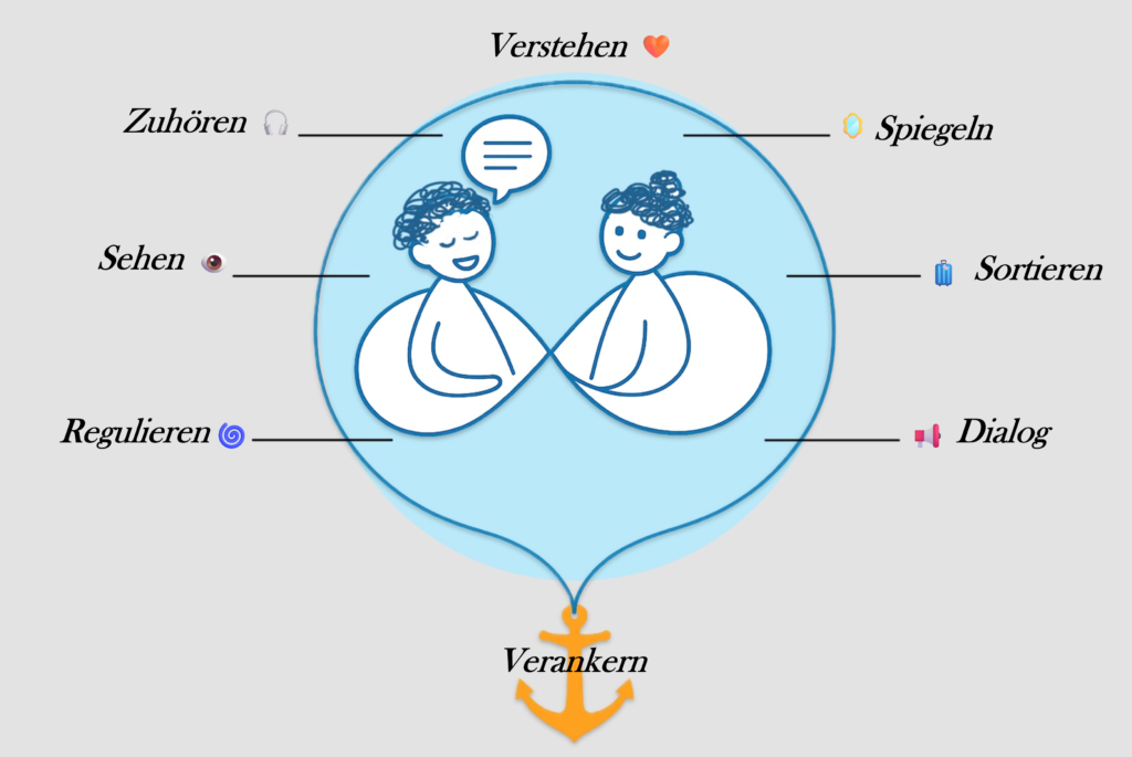 💡Zuhören & spiegeln: Ich höre Dir zu. Nehme wahr, auch, was zwischen den Zeilen mitschwingt und spiegle es Dir